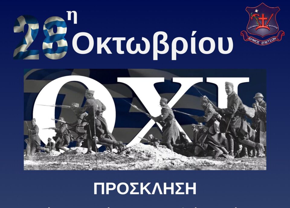 Ο Δήμος Σπετσών σας προσκαλεί να τιμήσετε με την παρουσία σας τις εκδηλώσεις για την Εθνική Επέτειο της 28ης Οκτωβρίου 1940.